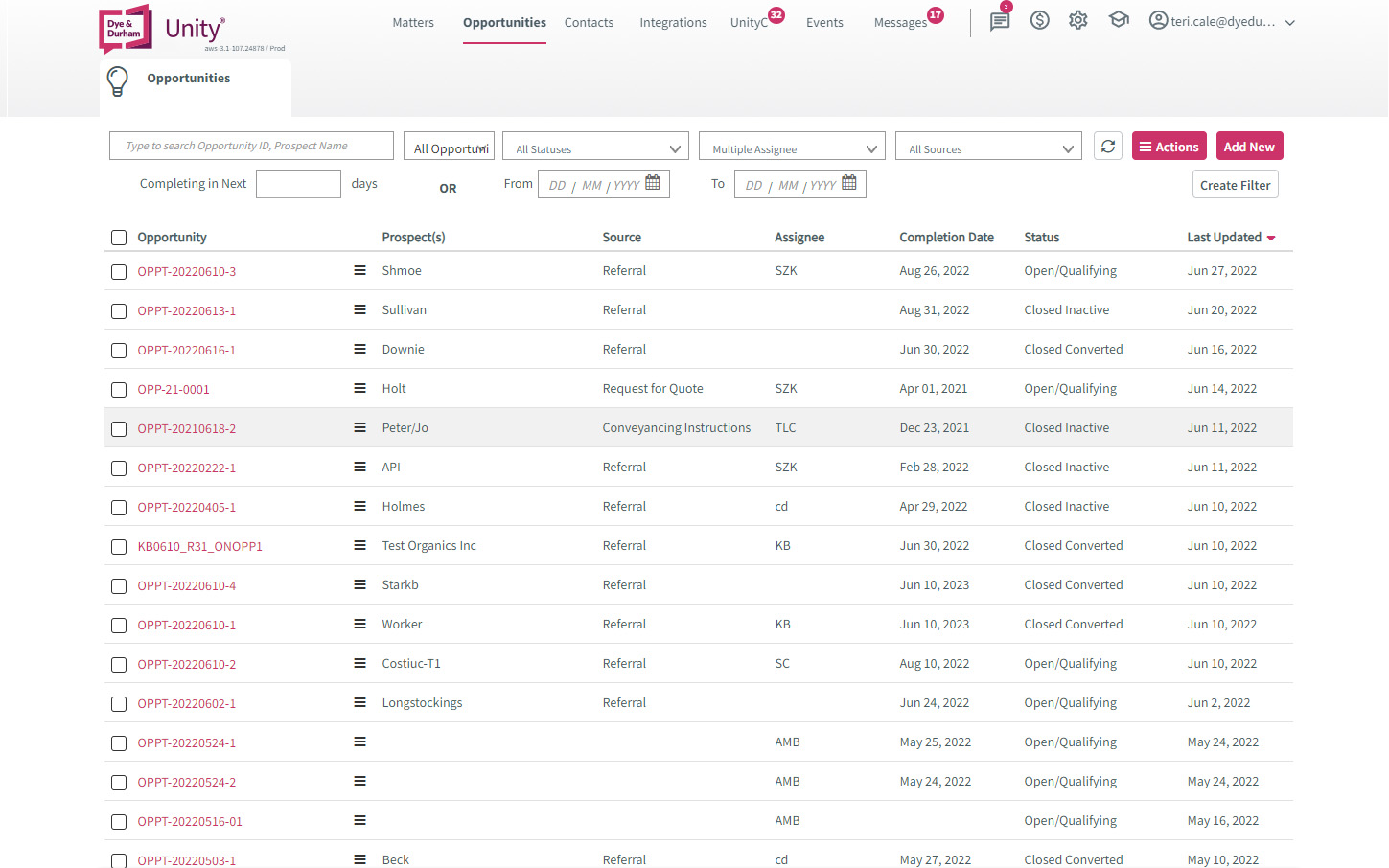 For Custom Matters or Opportunities opened in Unity®Practice Management.